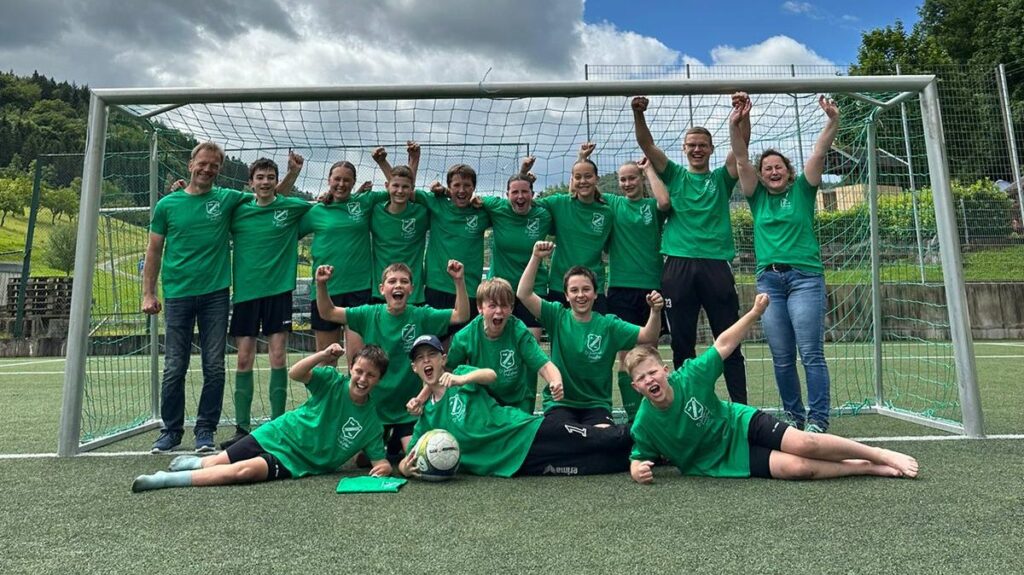 (bsch) Grund zum Jubel in Prinzbach. Nachdem die D-Jugend beim vorletzten Spiel eine 0:3 Niederlage in Reichenbach/Gengenbach einstecken musste, hatte das Team am letzten Spieltag die Möglichkeit in der heimischen DJK Arena die Meisterschaft perfekt zu machen. Die D-Jugend der DJK Prinzbach wurde nach einem 5:1 Sieg gegen die SG Wolftal 2 verdient Meister in der Saison 2023/2024 in der D-Junioren Kreisklasse 3. Der Jubel bei den Spielern und Spielerinnen und auch den zahlreichen anwesenden Eltern und Prinzbacher Fußballfans war groß. Zunächst gab es die obligatorischen Meisterschafts-T-Shirts und anschließend wurde im DJK Clubheim mit einigen Spezi Humpen und Schlachtgesängen auf das freudige Ereignis angestoßen. Für die Meisterkicker gab es leckere Grillwürste.